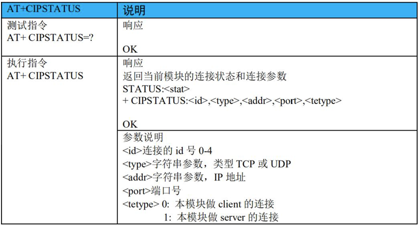 1)、AT+CIPSTATUS:获得连接状态
