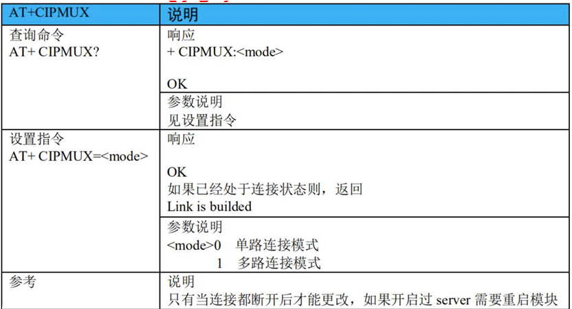 - 6)、AT+CIPMUX:启动多连接