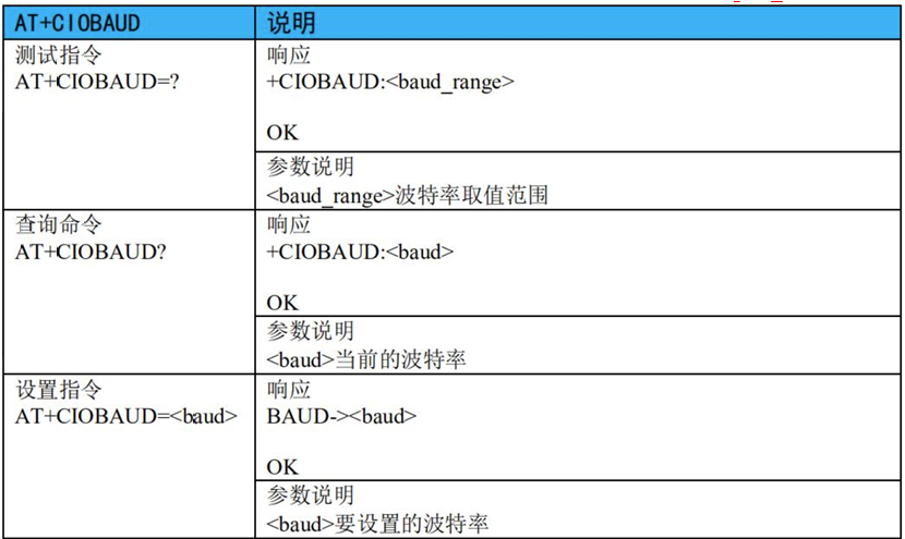 - 2)、AT+CIOBAUD:设置波特率