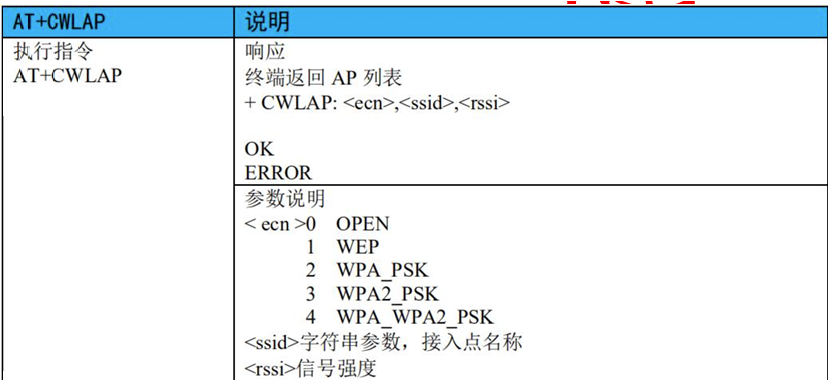 - 3)、AT+CWLAP:列出当前可用 AP