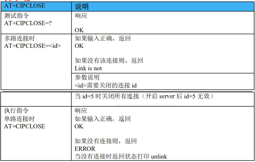 - 4)、AT+CIPCLOSE:关闭 TCP 或 UDP