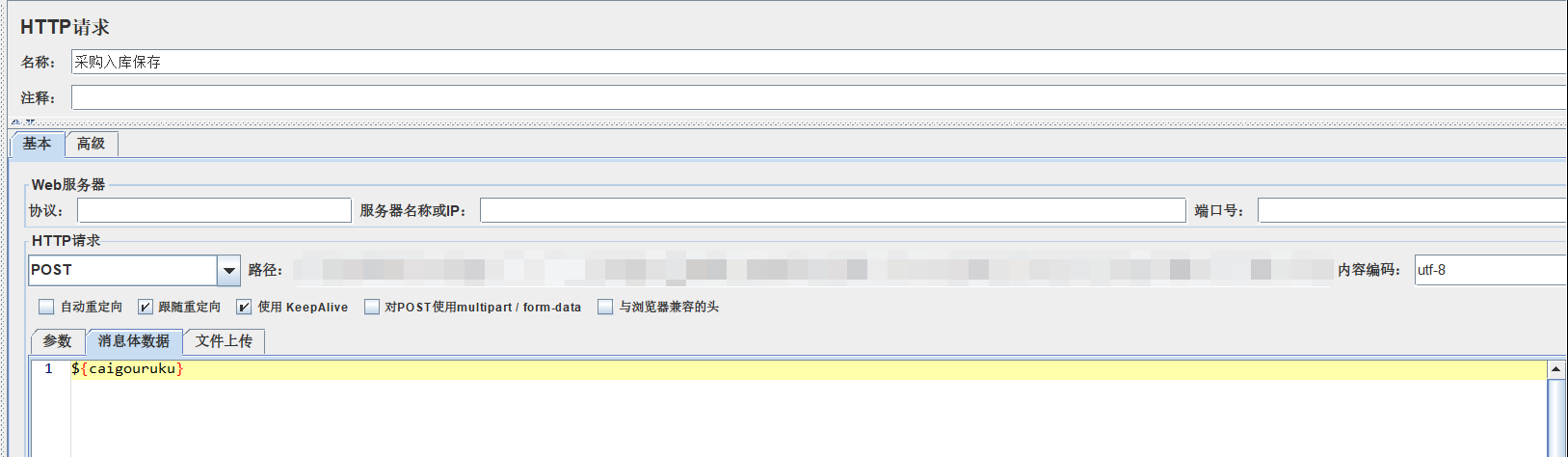 要用CSV获取文件中的请求体,然后在取样器-HTTP请求-消息体数据中使用变量引用;(如果还需要对请求体进行修改,则再使用JSR223 预处理程序)