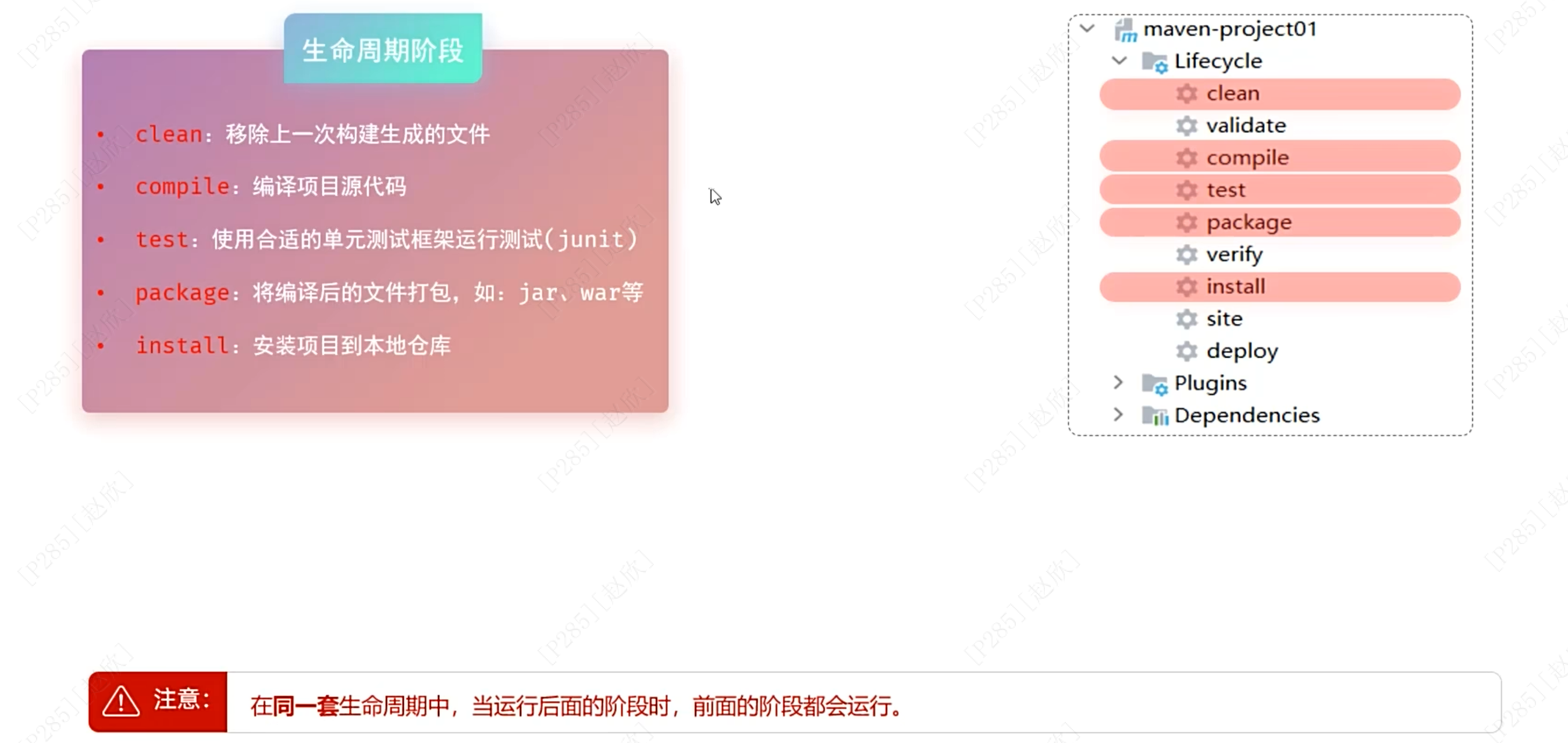 生命周期:点击install的时候前面的都会执行,除了clean