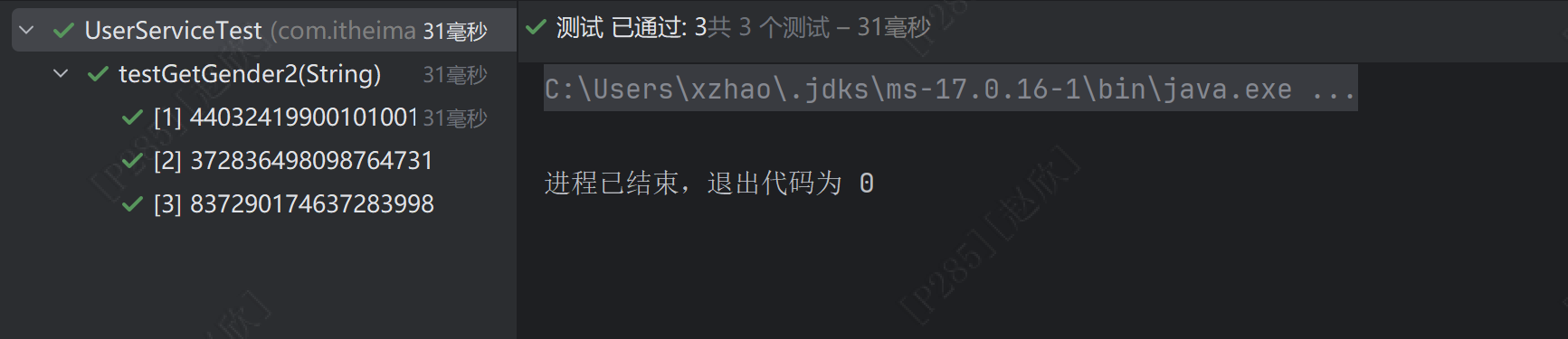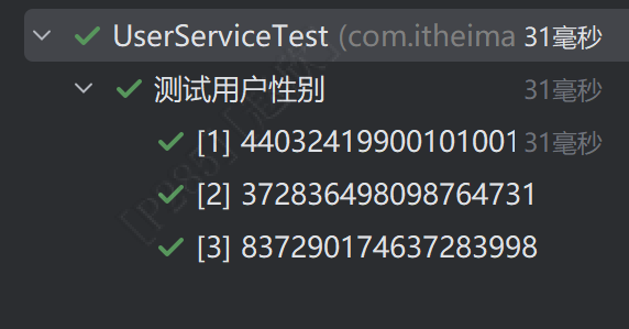 在代码上方添加注解:@DisplayName("测试用户性别"),结果如下: