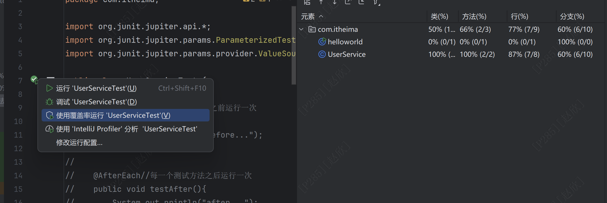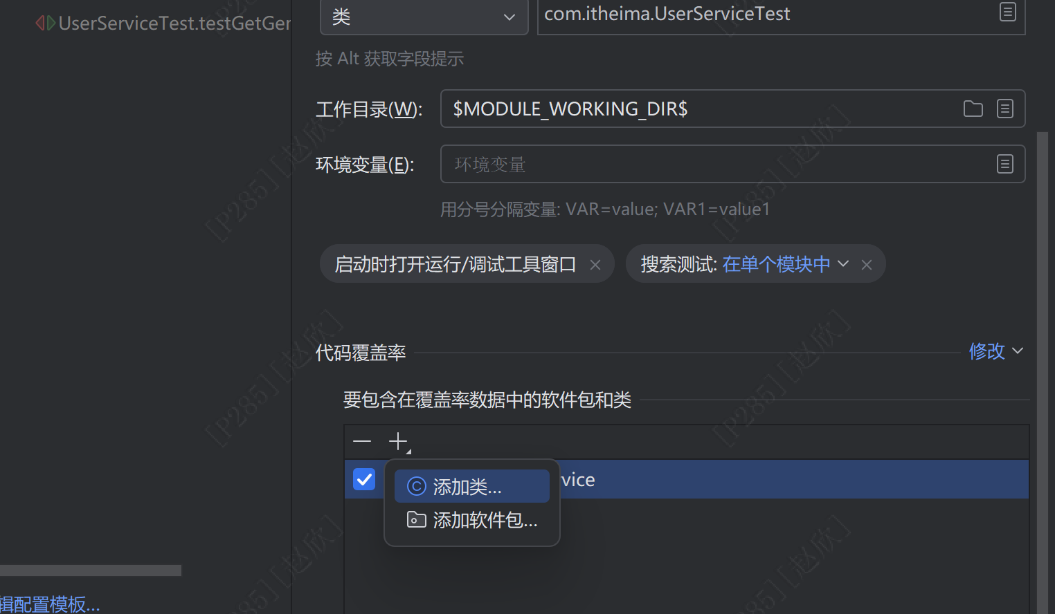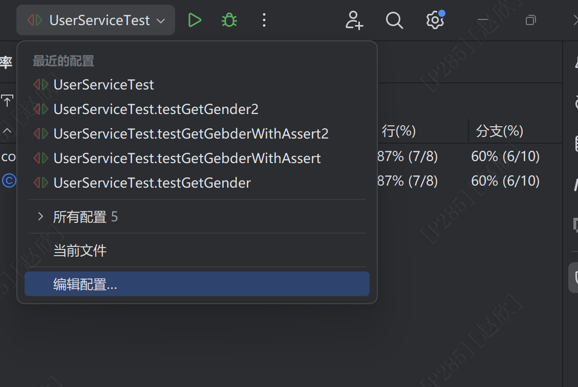 在userservice中点击通义的标志之后点击生成单元测试即可