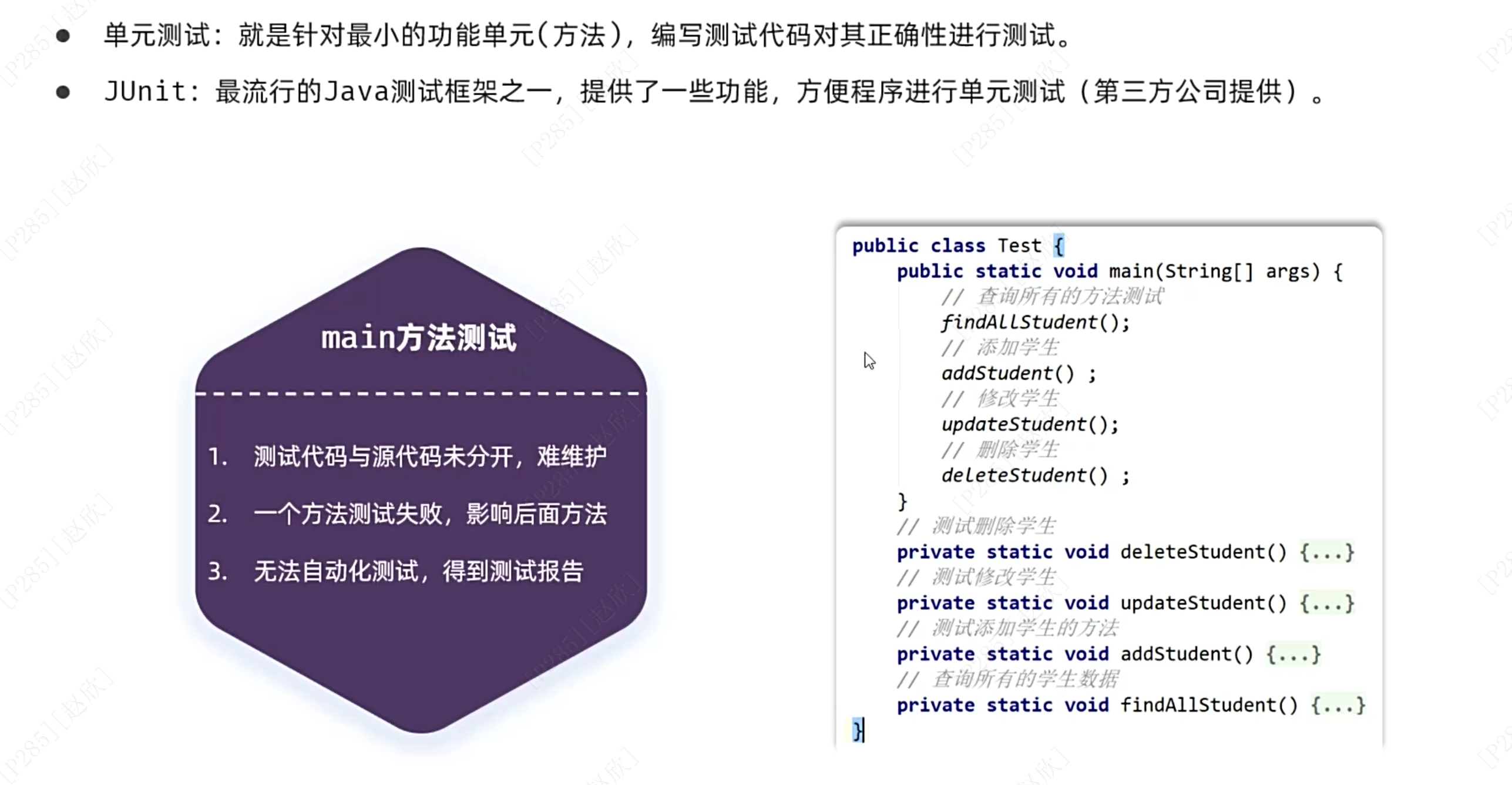 断言:主要因为测试代码只检查语法问题,方法的实际正确性是无法检查的,因此引入断言