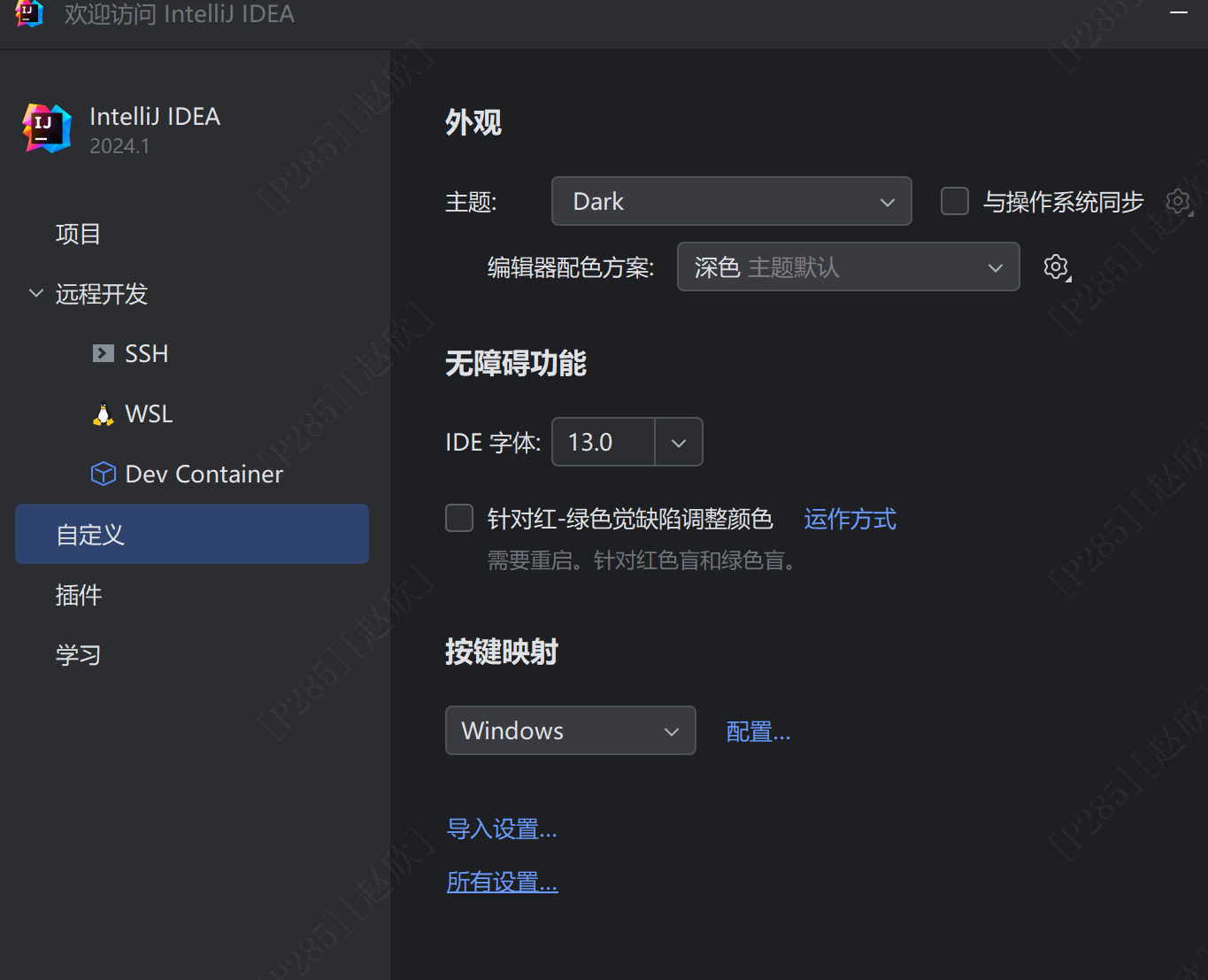 首先进入到idea的欢迎页面,关闭项目即可,否则就不是全局配置