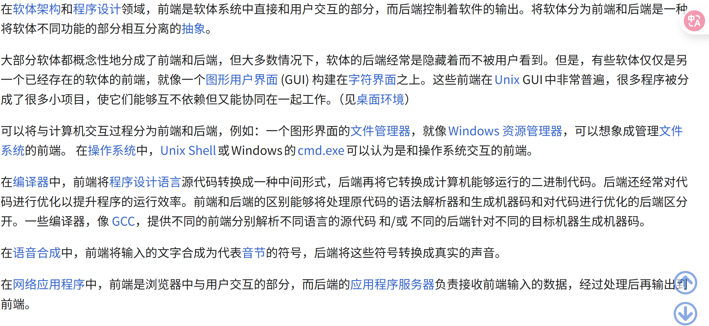 参考中文维基百科:https://zh.wikipedia.org/wiki/前端和后端