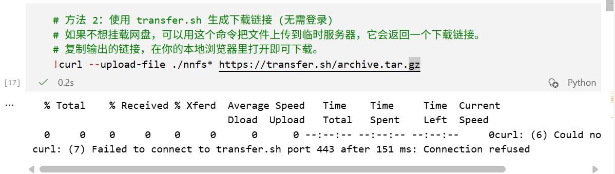 # 方法 2:使用 transfer.sh 生成下载链接 (无需登录)