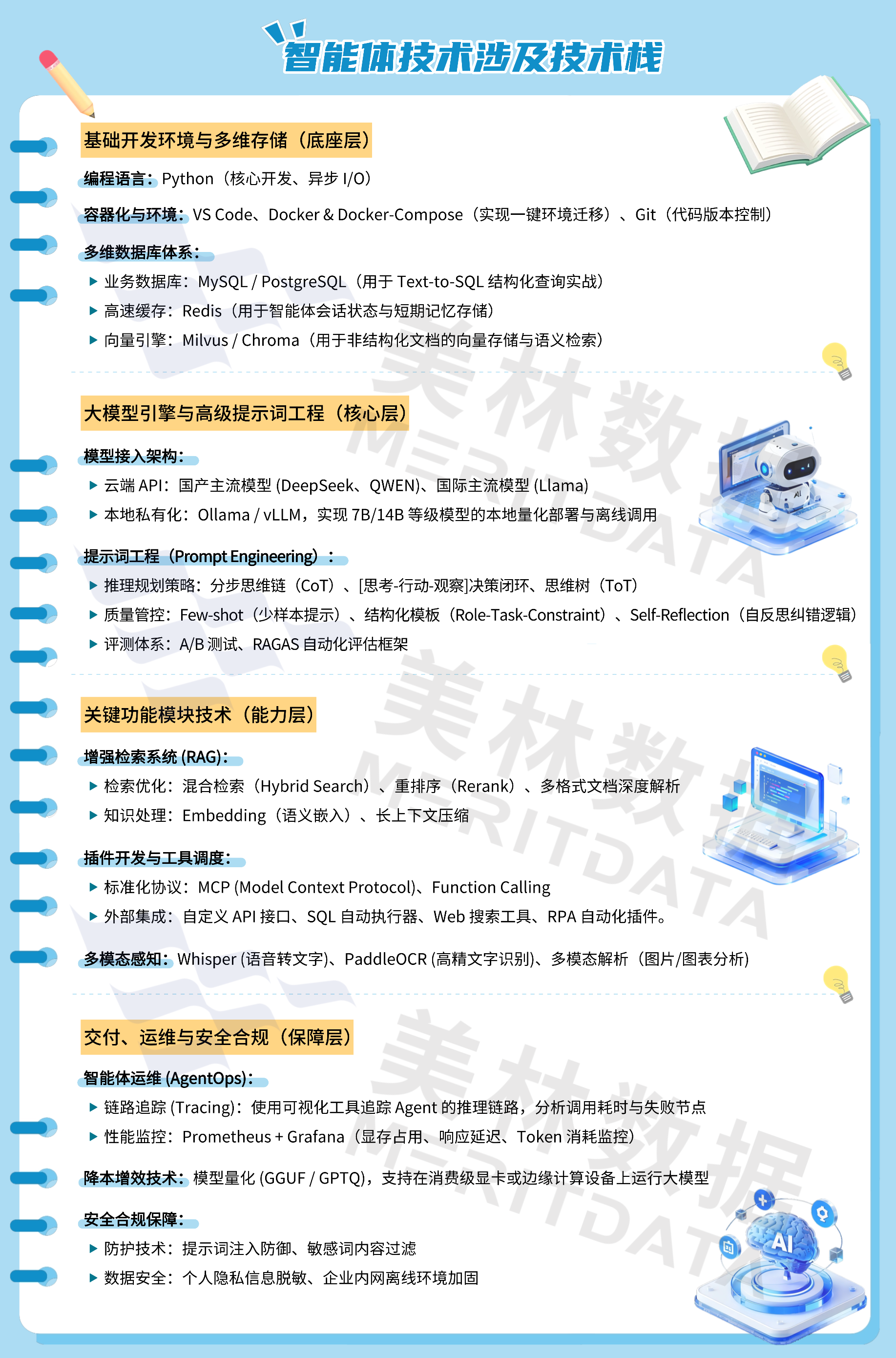 ❇️ 核心目标:精通大模型应用、提示词工程、智能体框架等核心技术栈,能独立完成智能体核心模块开发与调试,适配智能体开发助理、应用开发工程师等岗位要求。
