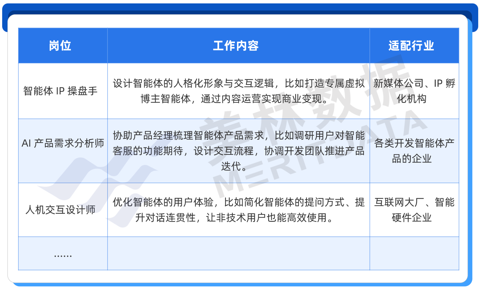 随着智能体技术成熟,催生出一批跨界岗位,这类岗位兼具技术与软技能要求,发展潜力大。