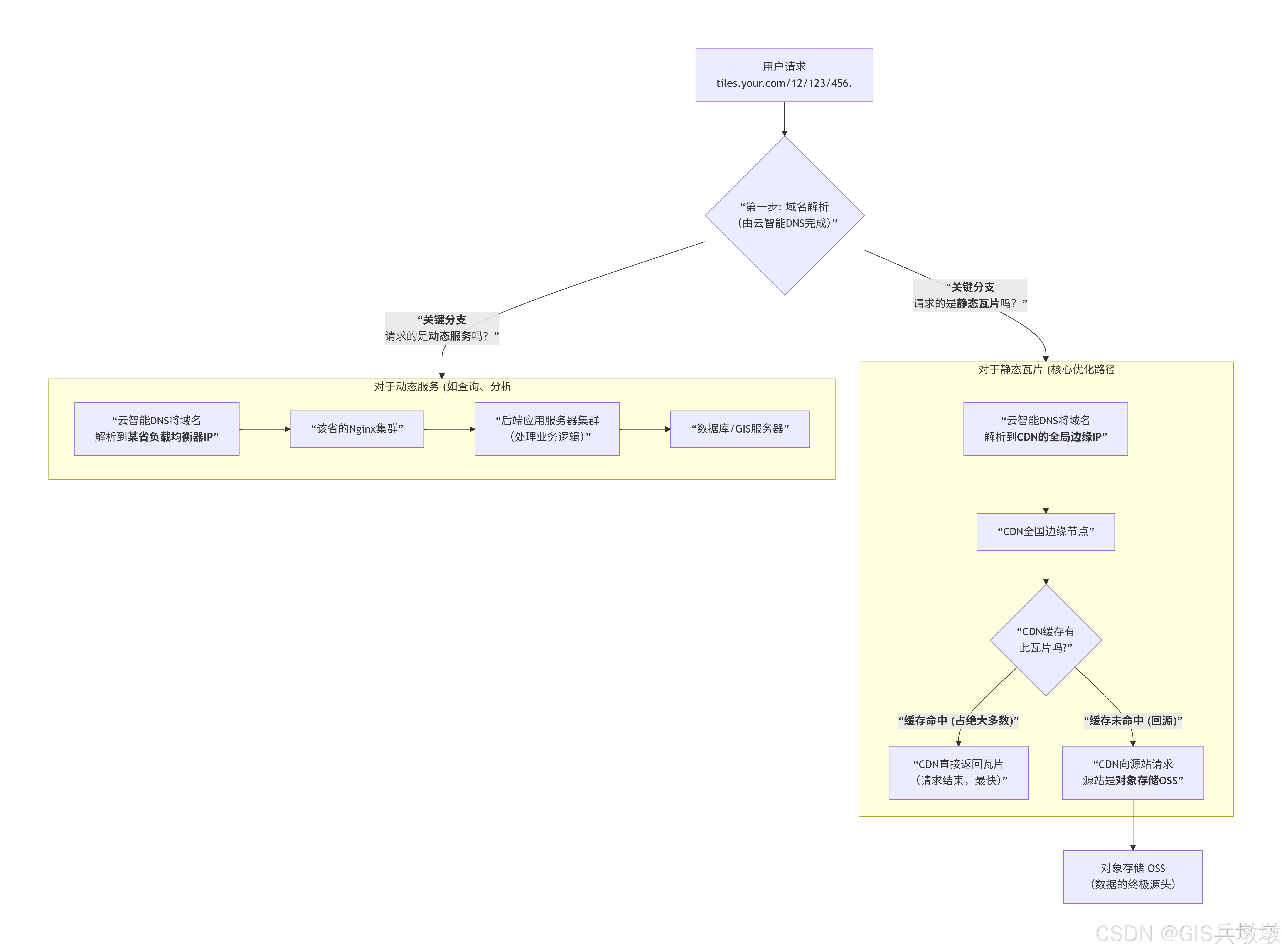 流程 :用户 → 云智能DNS (返回CDN IP) → CDN (命中则直接返回) → 对象存储 (未命中时回源)。