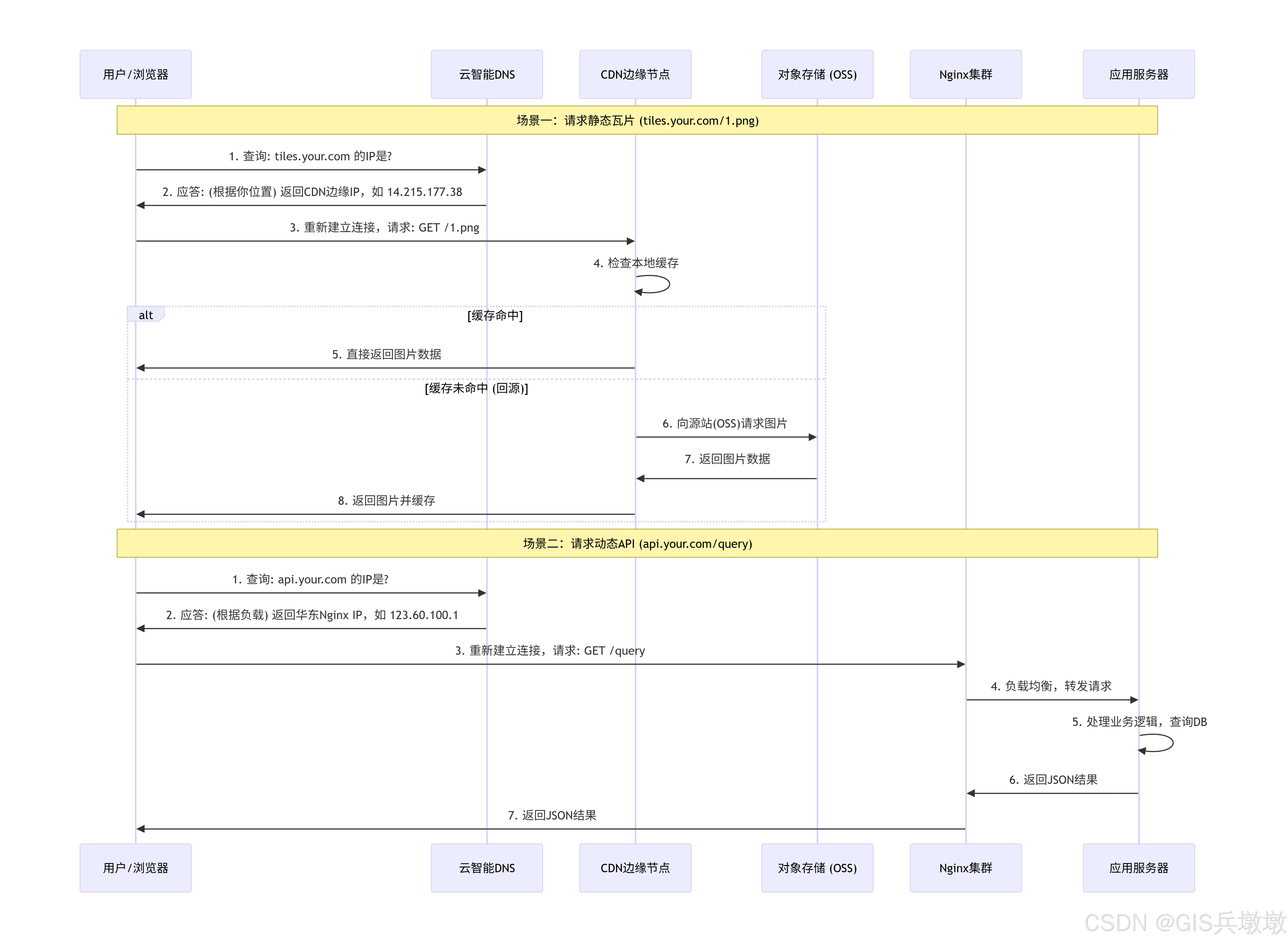 CDN 是遍布全国的前线补给站,直接从仓库补货,服务了绝大部分的简单请求(静态请求),让中央指挥部(Nginx+服务器)能专注于处理关键任务。