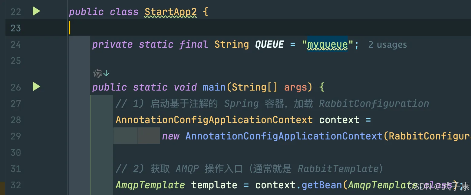 // 2) 获取 AMQP 操作入口(通常就是 RabbitTemplate)