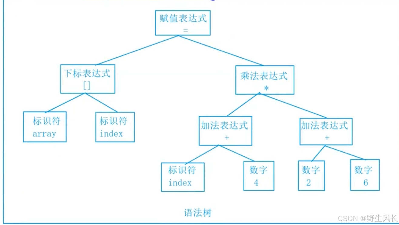 接下来语法分析器,将对扫描产⽣的记号进⾏语法分析,从⽽产⽣语法树。这些语法树是以表达式为节点的树。