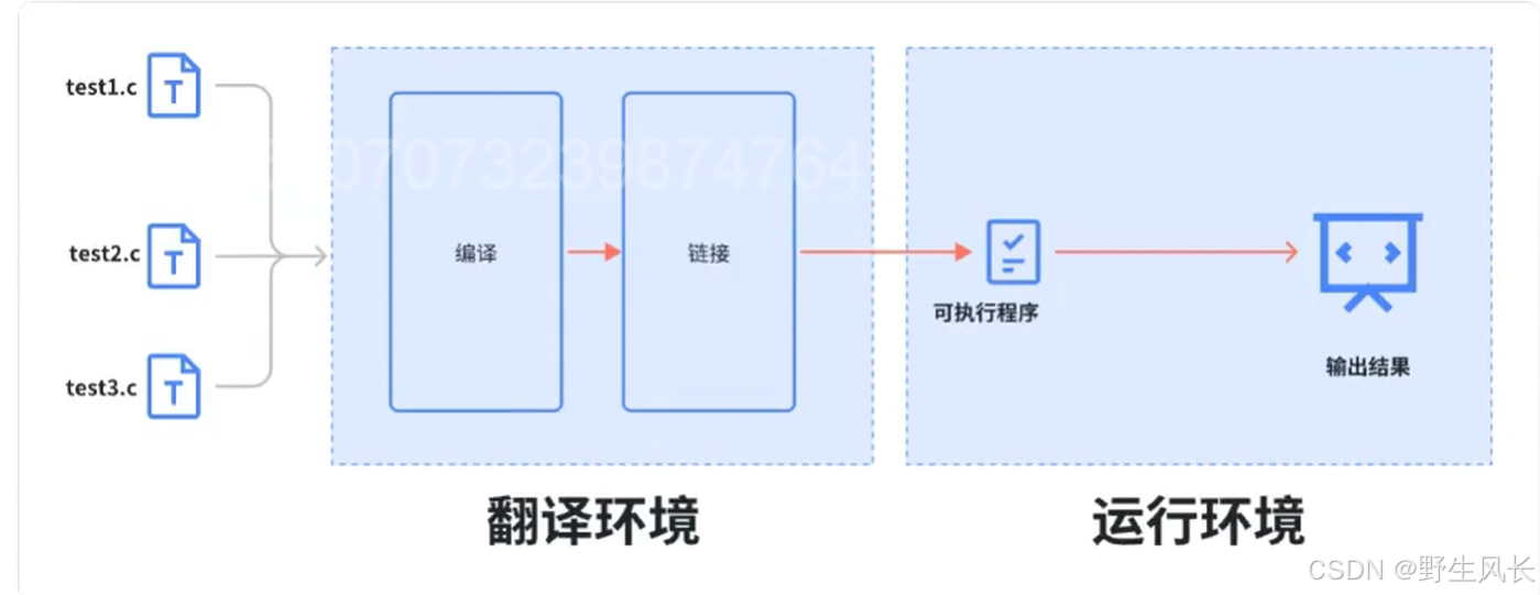 第1种是翻译环境,在这个环境中源代码被转换为可执⾏的机器指令(⼆进制指令)。 第2种是执⾏环境,它⽤于实际执⾏代码。