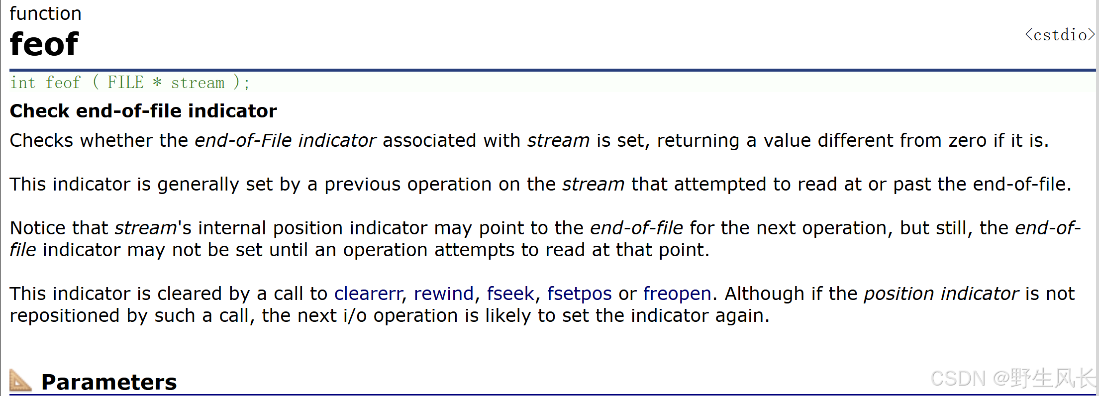 int feof ( FILE * stream );