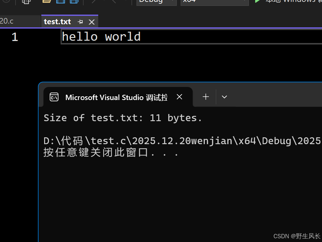 printf("Size of test.txt: %ld bytes.\n", size);//返回所有字节