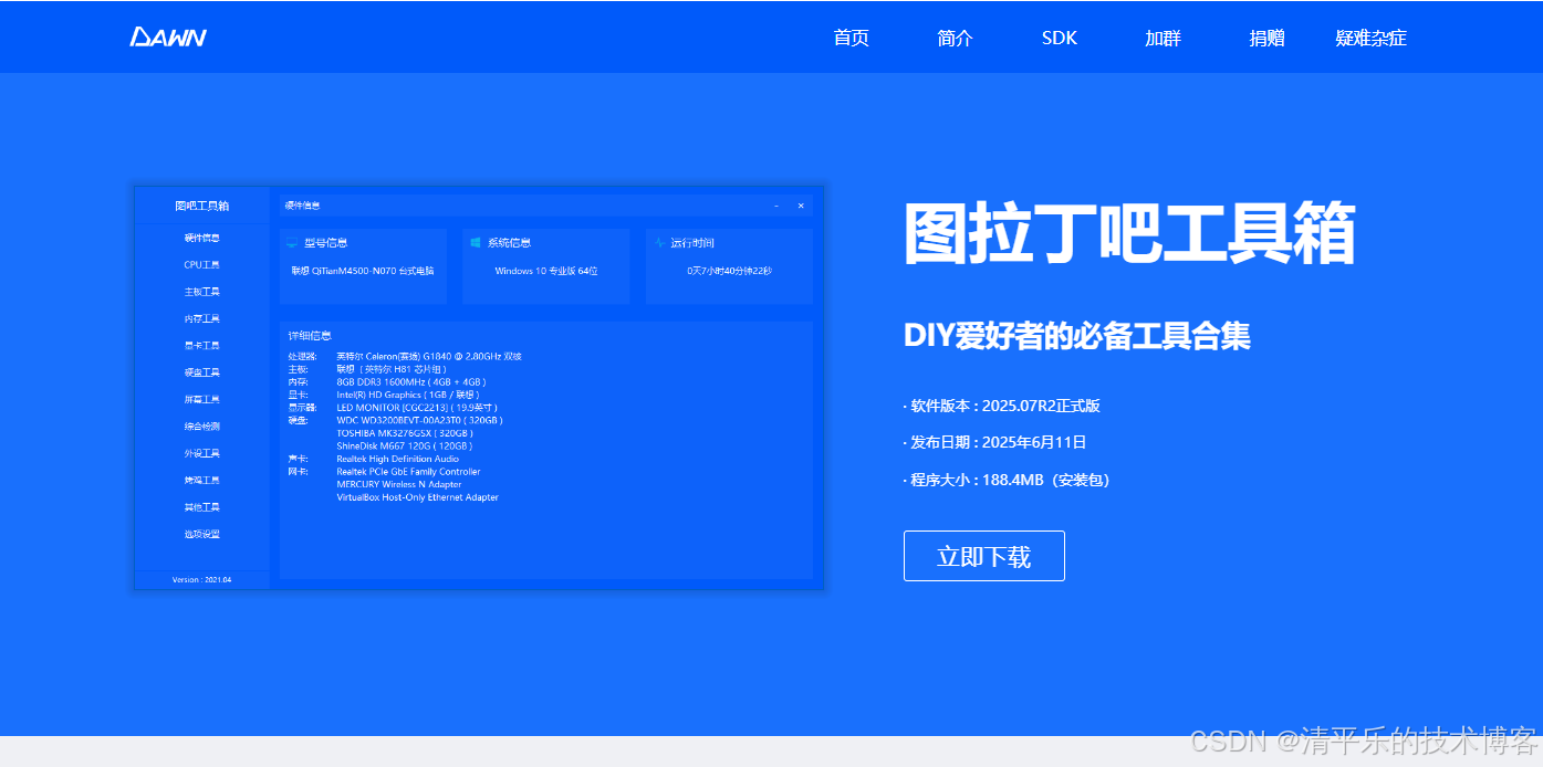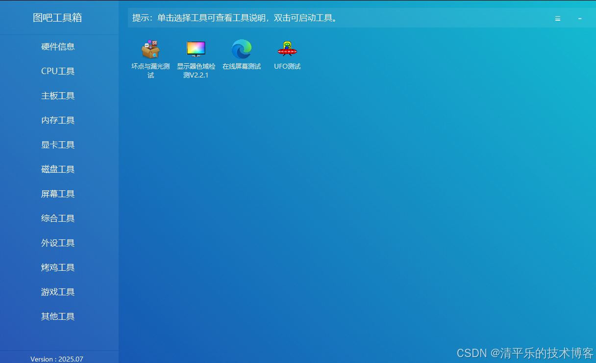 图吧工具箱是开源、免费、绿色、纯净的硬件检测工具合集,专为所有计算机硬件极客、DIY爱好者、各路大神及小白制作。集成大量常见硬件检测、评分工具,一键下载、方便使用。