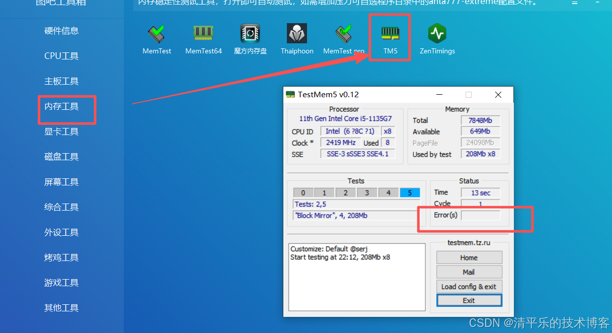 打开TM5进行检测,正常Error应该为空。