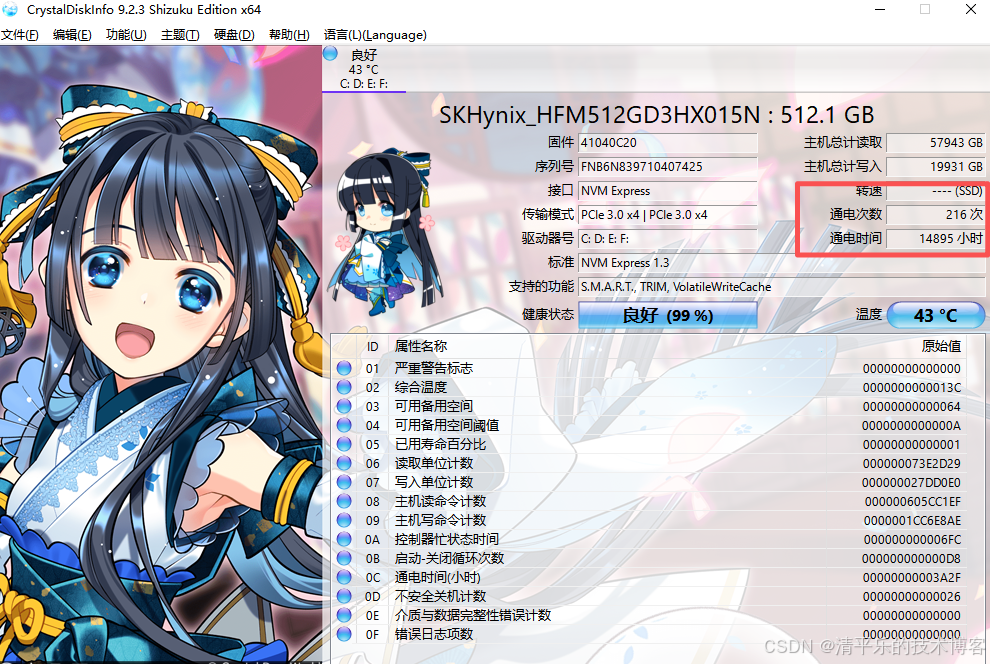 打开磁盘工具-Diskinfo进行检测,可以查看通电时间和次数等。