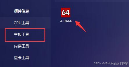 如果要查看详细的硬件信息,可以在"主板工具"中双击打开"AIDA64"。