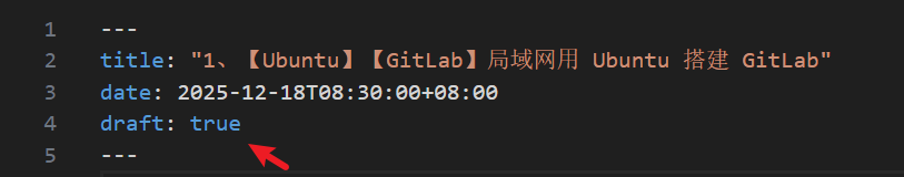 如果 draft: true,在默认情况下,Hugo 构建网站时,会主动忽略这篇文章,除非加了 -D 选项,这篇草稿才会被包含进来