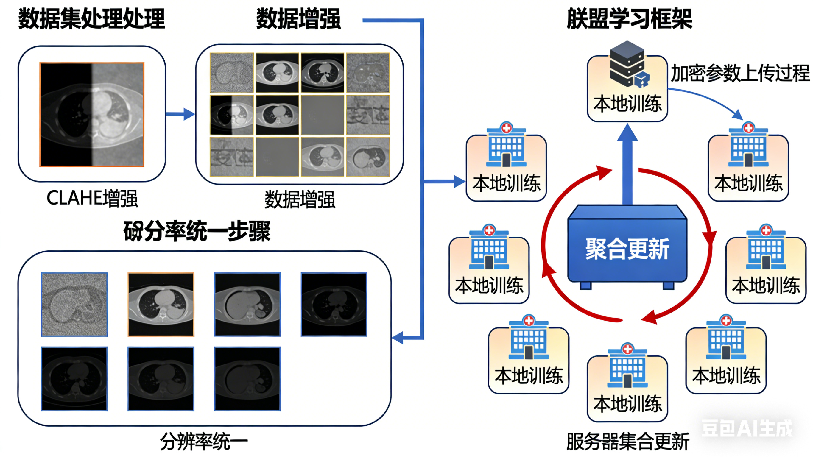 医疗数据的隐私性导致多机构无法直接共享原始数据,制约了模型泛化能力。为此,系统嵌入联邦学习模块,构建分布式训练框架:支持10家医疗机构在本地保留原始眼底数据的前提下,仅将模型训练的梯度参数通过加密通道上传至联邦服务器;服务器聚合所有机构的参数更新后,再将优化后的模型下发至各机构,实现"数据不出院、模型共优化"。经过多轮联邦训练,模型在不同医院的临床样本中均能保持稳定准确率,适配性大幅提升。