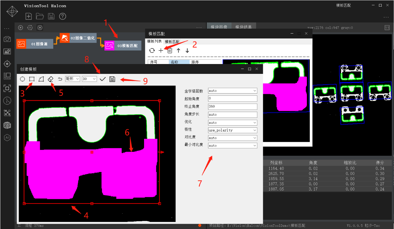 3、发布的文件中,包含例程Demo,Demo与系列文章对应,用VisionTool Halcon工具直接运行。