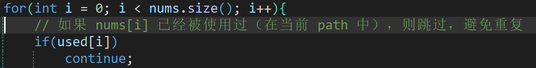 // 如果 nums[i] 已经被使用过(在当前 path 中),则跳过,避免重复