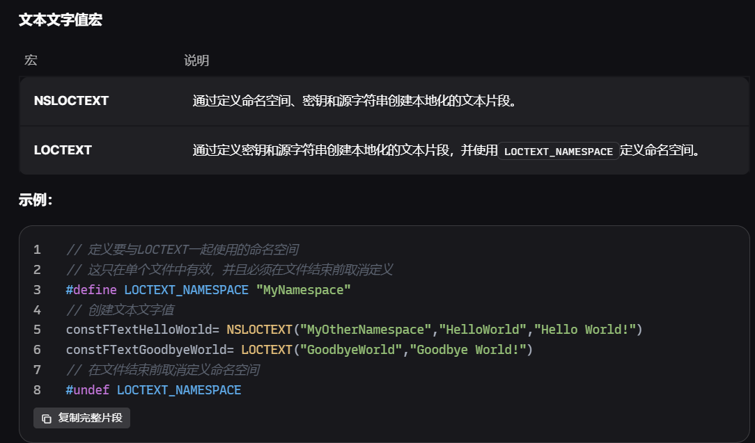 FText MyCodeText = LOCTEXT("OwnCode","MyCode!");