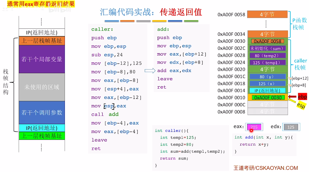 4.3_6_4_如何传递参数和返回值(函数调用的机器级表示)_哔哩哔哩_bilibili