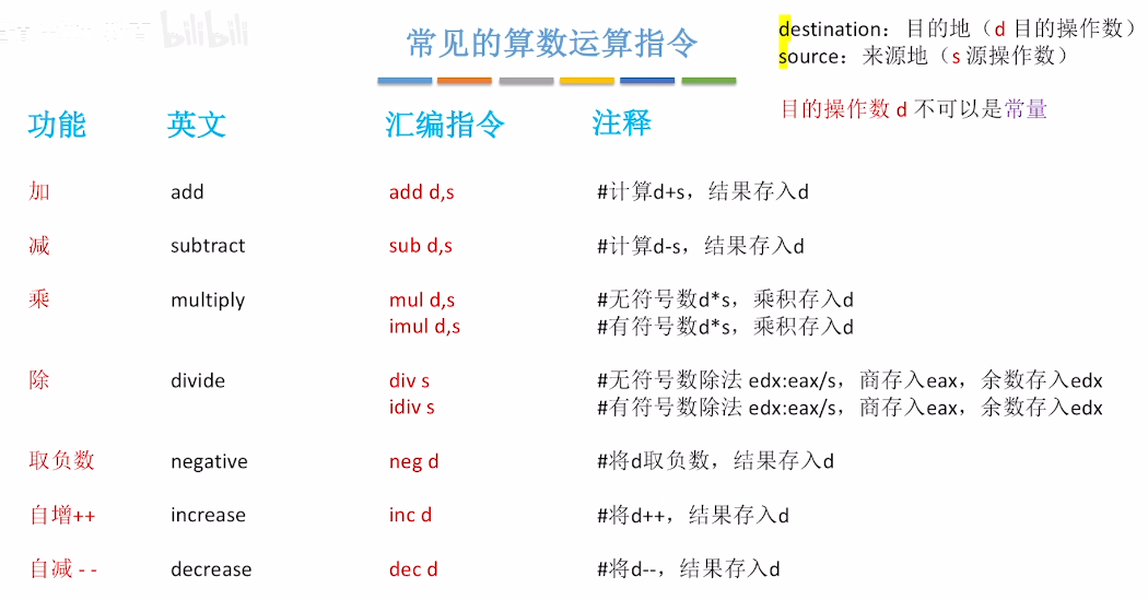 指令(A1)OP(A2) -> A1的含义是取出A1和A2地址上的操作数进行OP运算,运算结果存入A1地址。这里A1也称为目的操作数,A2也称为源操作数。