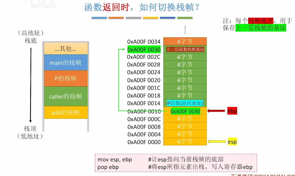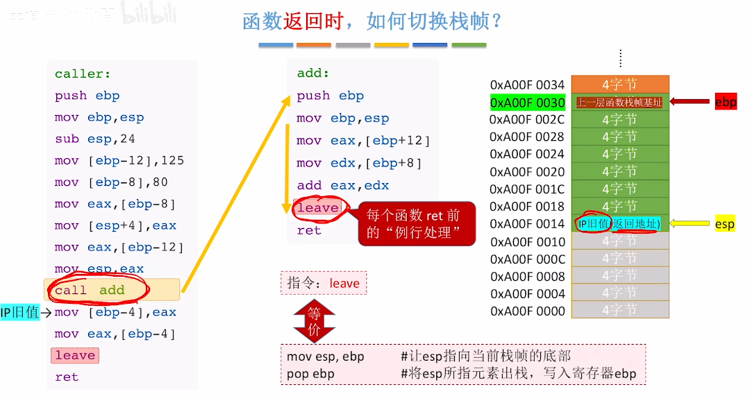 4.3_6_3_如何切换栈帧(函数调用的机器级表示)_哔哩哔哩_bilibili