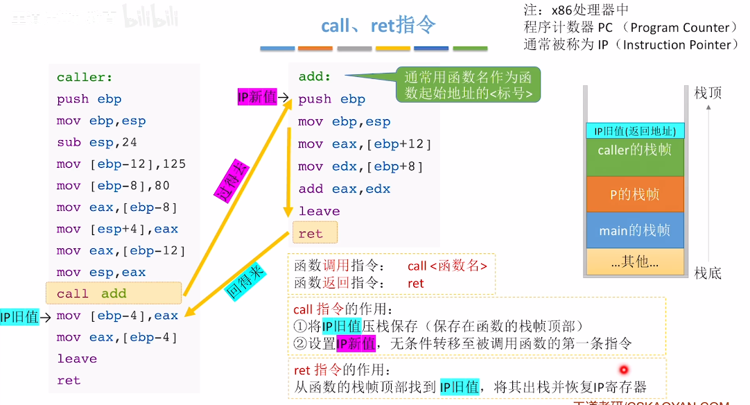 4.3_6_1_Call和ret指令(函数调用的机器级表示)_哔哩哔哩_bilibili