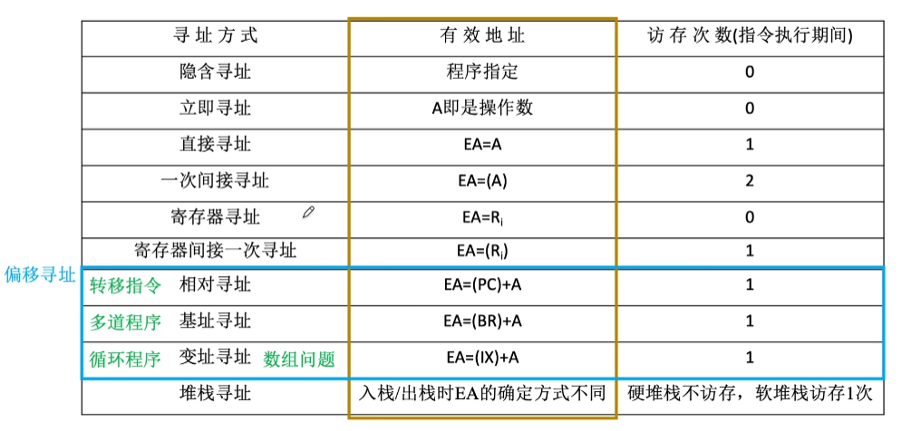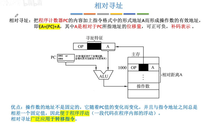 形式地址(A):指令中的地址码字段并不代表操作数的真实地址,这种地址称为形式地址(A)。形式地址结合寻址方式,可以计算出操作数在存储器中的真实地址,这种地址称为有效地址(EA)。