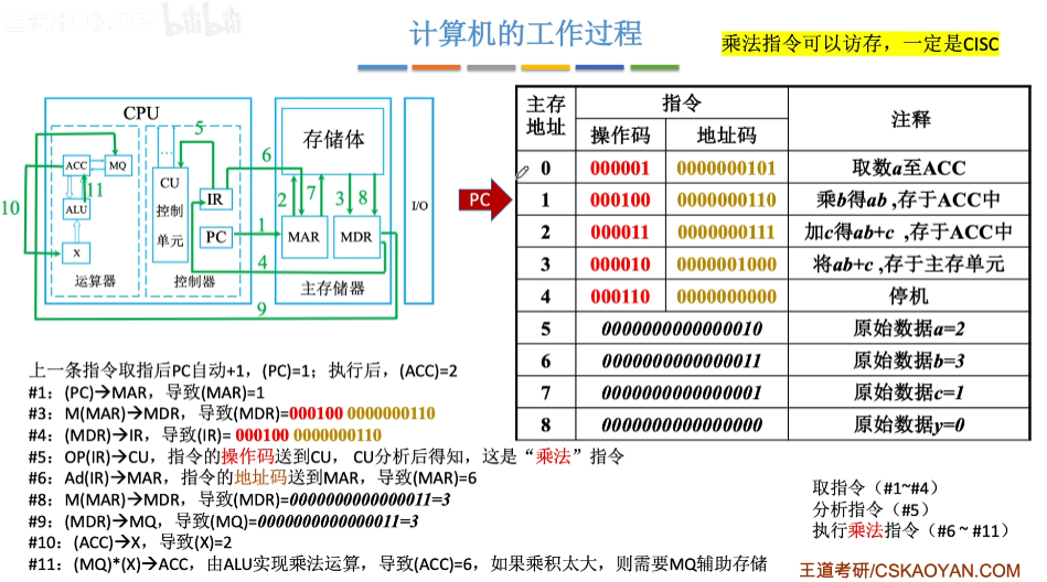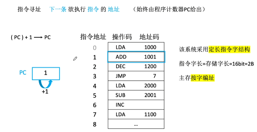 这里注意标红处,PC加1,这里的1是指一条指令长度,主存编码的不同或指令结构的不同,都会影响指令的长度,所以这里的1要理解为1条指令的长度。