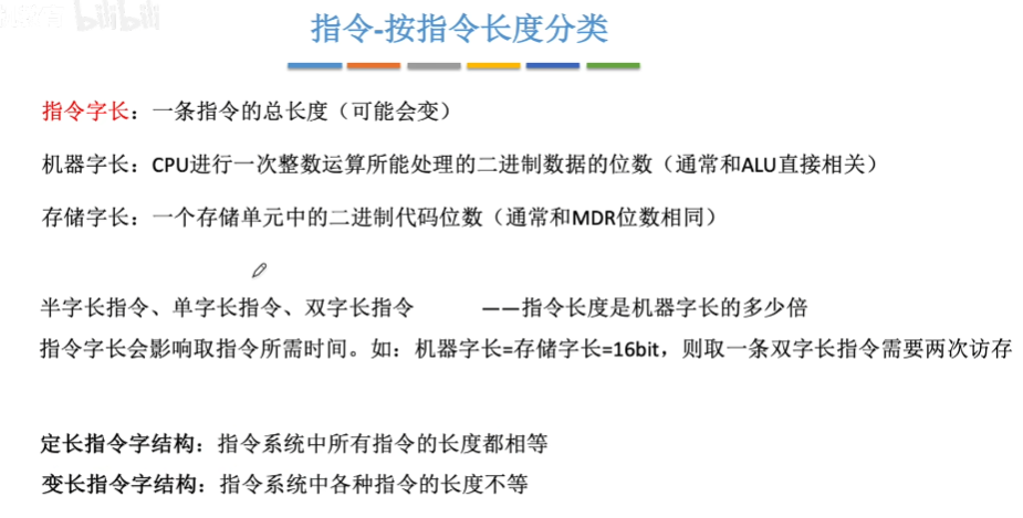 根据指令字长还可以将指令分为半字长指令、单字长指令、双字长指令,这里的指令长度指的是机器字长的几倍。显然,指令字长会影响机器取指令的时间。