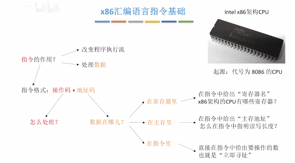 从这里,不难看出,x86语言有很多种,我们是不可能花费大量时间去把所有语言学完,这就要求我们具备在考试时如果遇到不会的汇编指令,要能根据程序推出指令的含义的能力。