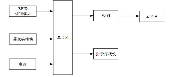 在防疫物资监控系统设计中,采用STM32单片机作为系统主控核心,结合RFID识别模块、指示灯模块、WiFi无线通信模块、摄像头模块实现硬件的整体构架。系统设计功能具体如下: