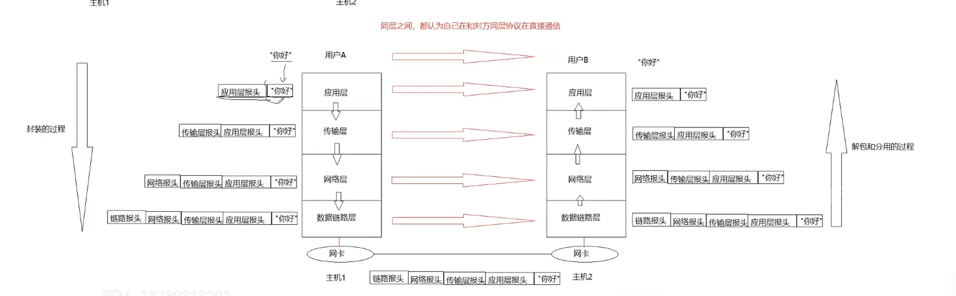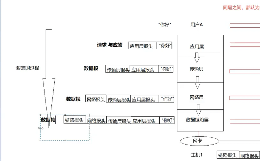 就像套娃:应用数据 → 加 TCP 头 → 加 IP 头 → 加以太网帧头。