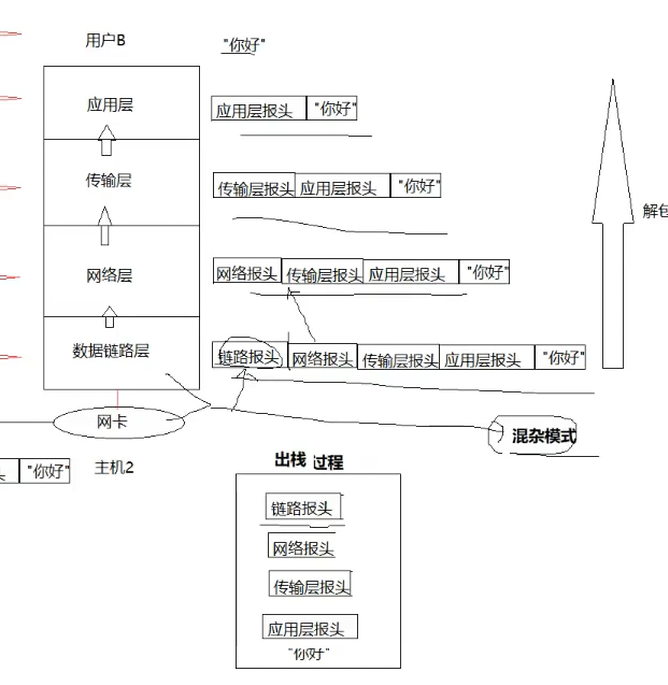 接收方 B 则反向操作:剥帧头 → 剥 IP 头 → 剥 TCP 头 → 交给应用。