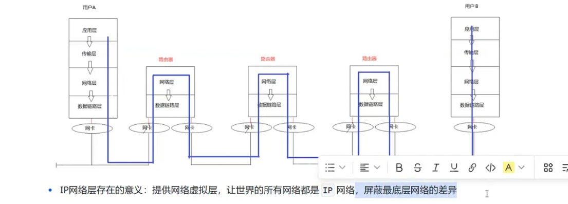 正是 IP 层的存在,才让全世界各种物理网络(以太网、Wi-Fi、4G、卫星)统一成"IP 网络"------这是互联网成功的基石。
