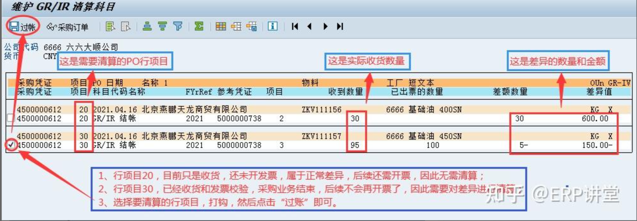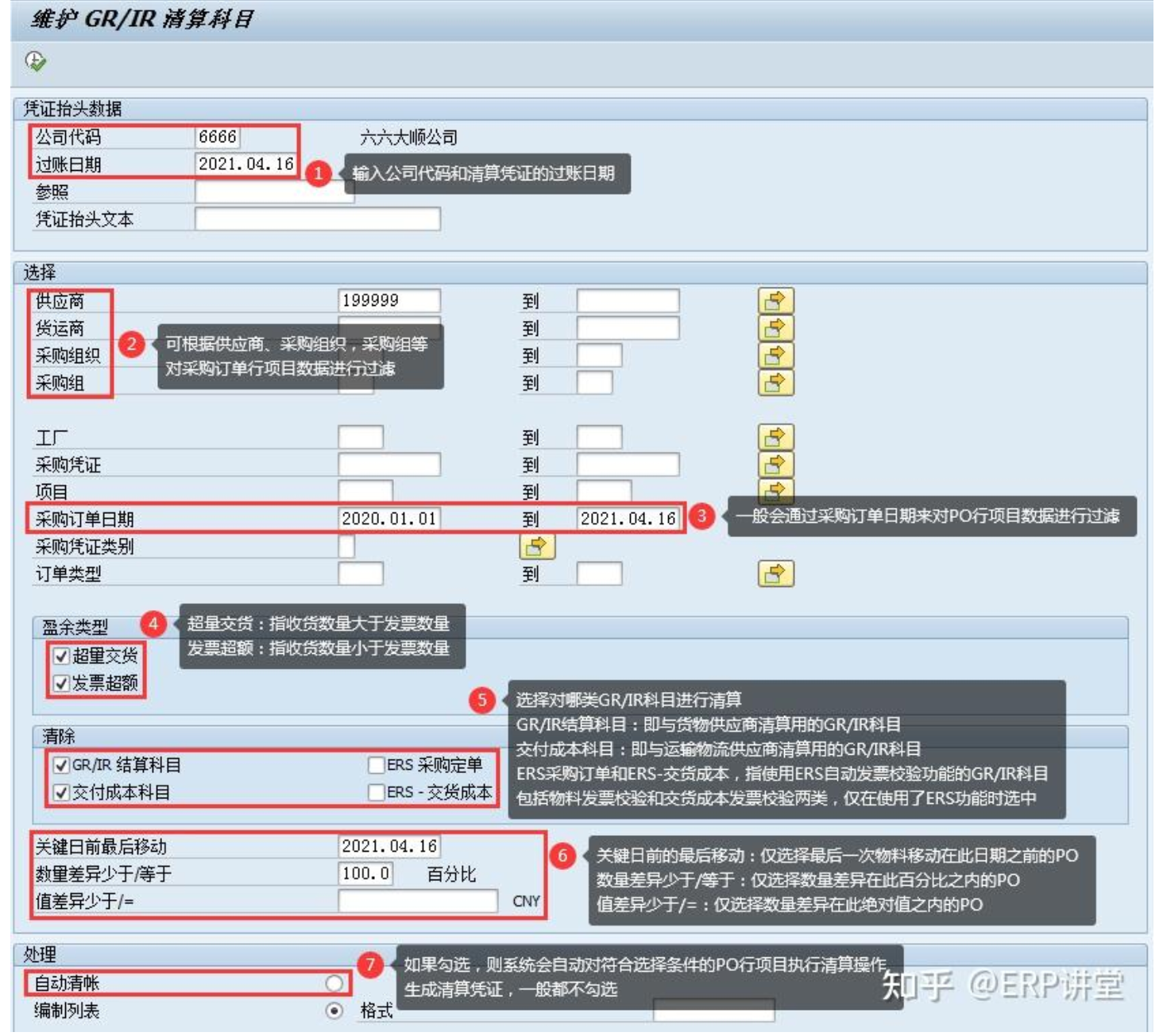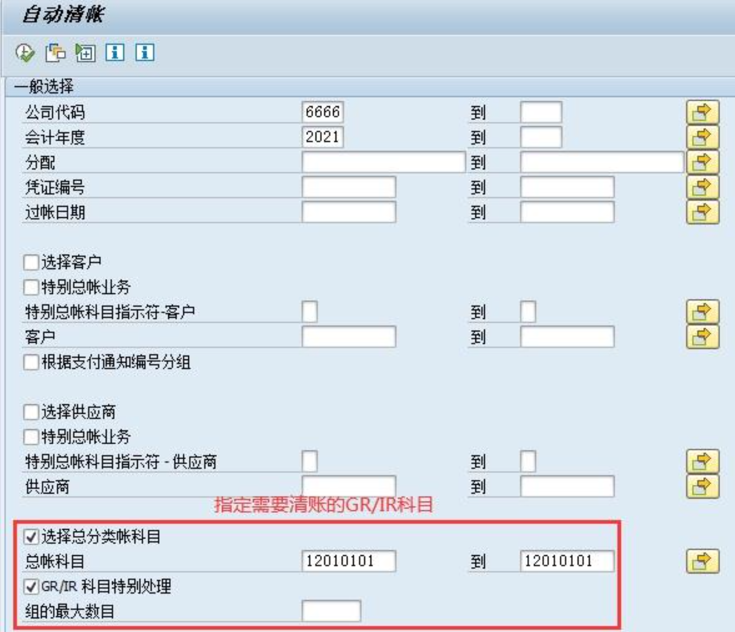 不勾选GR/IR特殊处理 使用事务码OB74配置自动清账规则。