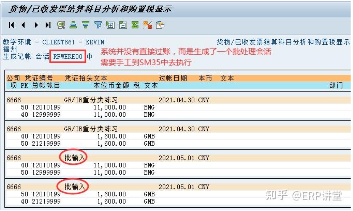SM35执行后,查看GR/IR重分类处理的财务凭证: