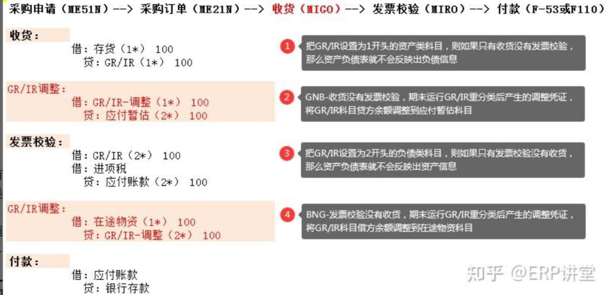 SAP中GR/IR重分类详解 - 知乎**GR/IR科目全称是Goods Receipt/Invoice Receipt,是用于采购收货和发票校验清算的中间科目,**其在采购业务中的用途如下图所示: