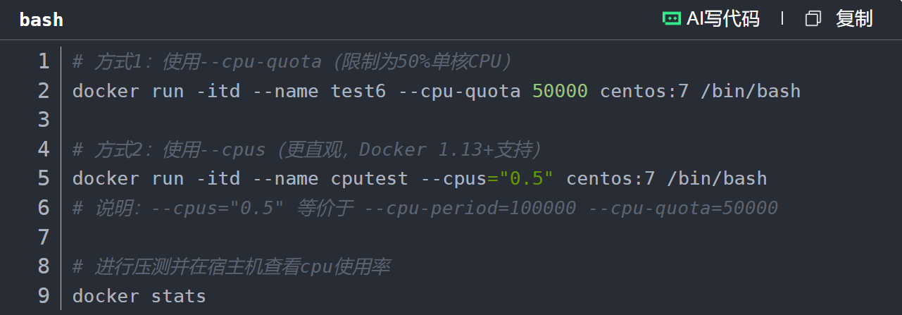 - [2.1.1 设置CPU使用率上限(--cpu-period / --cpu-quota)](#2.1.1 设置CPU使用率上限(--cpu-period / --cpu-quota))