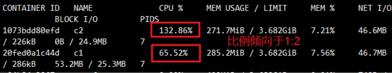 2.1.2 设置CPU占用比(权重 --- --cpu-shares)