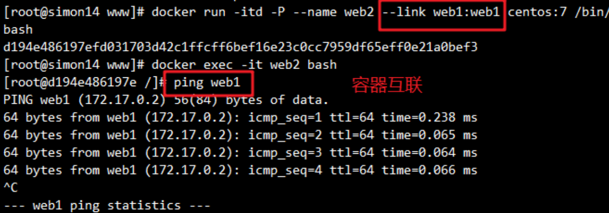 Docker容器互联(使用CentOS镜像)