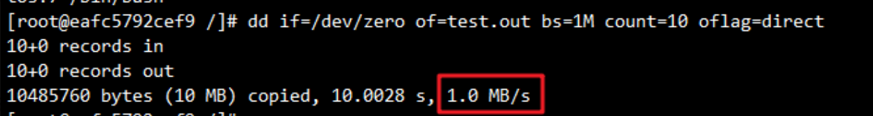 通过dd命令(跳过文件系统缓存)测试写速率: